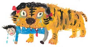 タイプ3 ちしき酒 このタイプの人間は誘導しやすい。 どんな話題にも口をはさみ、ひと言述べねば気がすまない。 頃合を見計らい、トラについて教えて、と頼むだけでよい。 トラっていうのはアジア最大の肉食獣で、 昔は西アジアや朝鮮半島の森林にも住んでいたんだけど、 乱獲により数が減って、現在ではインドやシベリア中心に 生息数およそ5000頭といわれる希少動物なんだ…… こんな具合に延々とトラの知識がひろうされるはずだ。 ちしき酒タイプの人間もまんまとトラに変身する。
