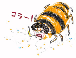 第10回![]() ベニシジミという蝶【チョウ】をごぞんじだろうか。 南西諸島を除く日本全国に分布する橙色の小さなチョウだ。 このチョウがモデルになった可能性のあることわざがある。 それは「蓼食う虫も好き好き」。 チョウの幼虫は食べ物に厳格で、極端な偏食家である。 モンシロチョウの幼虫(青虫)がキャベツや菜の花などの アブラナ科の植物につくように、 ベニシジミの幼虫はスイバやギシギシなどのタデ類につく。 彼らにとってタデは命の糧に他ならない。 それをあげつらうようなことわざはいかがなものだろうか。 もっともベニシジミばかりがタデを食うわけでもない。 人だって食通ともなれば鮎の塩焼きには蓼酢が不可欠だし、 イタドリもスイバもすっぱいけれど食べることができる。 さらに多くの日本人が好物としているソバだってタデ科植物。 外国人が見たら、日本人こそ「蓼食う人も好き好き」なのだ。 ![]() 「蚊【カ】の鳴くような声」という表現がある。 貧相な体格のカが出しそうなかぼそくて弱々しい声のこと。 もちろんカは鳴かない。 だからこの言い回しは生物学的に間違いである。 カが耳元で立てるブーンという高い音は羽音であり、 しかもかよわいどころか耳ざわりでしかたない。 だからこの言い回しは修辞法としても間違っている。 「一寸の虫にも五分の魂」もひどい。 一寸は約3センチだから、 その大きさならチャバネゴキブリくらい。 やつらの魂の大きさが1.5センチも あるはずがないではないか。 そもそも魂はいまだ科学的に物体として確認されていない。 それなのになぜ大きさがわかるのだろう。 もし仮にことわざが正しかったとしよう。 するとやつらを殺すたびに1.5センチの魂を つぶしていることになる。 われわれ人類はそこまで冷酷非道な生き物なのだろうか。 ![]() 「蛍【ほたる】二十日に蝉【せみ】三日」 ということばもある。 絶頂期は短いですよ、という意味だ。 わかりやすい比喩のようだが、これもまた事実誤認である。 昆虫はほとんどの場合、成虫期間より幼虫期間が長いのだ。 だから彼らの一生において 成虫なんて時期は老後のようなもの。 幼虫の期間こそ、虫の虫たる絶頂期といえよう。 その伝でいけば、ホタルの絶頂期は1年近くに及ぶし、 セミにいたっては7、8年はざらで、 17年なんてつわものもいる。 政治家を評するときによく用いる「玉虫色」。 これもイエローカードぎりぎりの表現だろう。 なぜならタマムシがすべて 七色に光り輝いているわけではなく、 角度によって色が違って見えるわけでもないからだ。 日本に250種ほどもいるタマムシの大半は 茶色っぽかったり黒っぽかったりして地味な虫なのだ。 もっとも政治家などしょせん 地味な人種って意味ならOKかも。 ![]() 地味といえばとても地味なのに、 日本語使用頻度が高い虫もいる。 ケラである。 そもそも虫をさげすむときに 「虫けら」と接尾語にするほどだし、 「おけらになる」は 賭けで負けて無一文になった状態の常套句。 それにしても、無一文がなぜケラなのだろう。 一説にはケラが前脚を広げた姿が、 お手上げのポーズに似ているからだという。 ケラを実際に捕まえたことのある人には説得力のある仮説だ。 あまり有名ではないが 「けらの水渡り」ということわざもある。 最初は熱心にやっても途中で投げ出す場合のたとえである。 これなど、先人の誰かがケラを水中に放り投げたのだろう。 もともと土中生活者のケラは 必死で生き延びようと泳ぐはずだ。 だが土を掘るのに適した前脚は 水をかくには不向きに違いない。 やがてケラはあきらめて泳ぐのをやめたと想像される。 つくづく気の毒な虫であるが、よく観察された虫でもある。 観察の行き届いた表現は他にもある。 「蜂【はち】の巣をつついたよう」という比喩はいいえて妙。 いうまでもなく大騒ぎのさまを表したことばである。 想像して欲しい。 ミツバチの巣でもおおごとだが、 それがスズメバチの巣だったりした日には、 上へ下への大騒ぎになること必至である。 「蜘蛛【くも】の子を散らす」も実に的確な表現だと思う。 もっとも実際にクモの子が散る場面を見た経験のある人が いまの世の中にどれだけいるかは疑問であるが。 証言しよう。 クモの子は親の作った巣の中に固まっているものだが、 危険を察知すると四方八方へといっせいに逃げていく。 その散りっぷりの見事なこと見事なこと。 ただしあまり真剣に見ていると鳥肌が立つこと必至である。 ![]() ときとしてことわざは科学的事実に先んじる。 20世紀になり、動物行動学が脚光を浴びはじめた頃、 鳥を使ってある実験が行なわれた。 鳥にハチを食べさせたところ、刺されてしまった。 毒によって痛い目にあってしまったのである。 以来学習した鳥は二度とハチを食べなくなった。 同じ鳥に今度は毒をもたないアブを与えてみた。 なんと鳥はアブも敬遠して食べなかったのだ。 ハチをとらない鳥は姿形のよく似たアブもとら