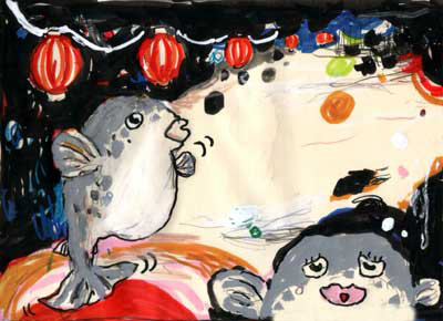 第12回![]() 多摩川でアザラシの「たまちゃん」が人気を博した少し後、 立会川をのぼるボラたちが有名になったことがある。 たしか地元商店街では「ぼらちゃん」と呼んでいたようだ。 釣りをする人だったらくだらない騒ぎだなあと思ったはず。 ボラなんて魚は都会にも珍しくないし、 いつだって河口をうろついてるんだから。 しかも十把ひとからげに「ぼらちゃん」である。 ボラの集団を「ぼらちゃん」とはなんといいかげんな愛称。 せめて「ぼらちゃんズ」だろうというつっこみはさておき、 はぐれたボラはもはや「ぼらちゃん」ですらないのだ! なんと理不尽な話だろう。 ボラ(鯔)はブリやスズキと同じく出世魚である。 小さいときにはオボコと呼ばれる。 「おぼこ」娘のオボコである。 うぶなオボコが長じてイナへと変わる。 「いなせ(鯔背)」な兄貴ってときのイナである。 粋な若者のイナがボラになり、さらにトドへと成長する。 海馬と表記する海獣のトドではない。 「とどのつまり」のトドである。 立会川のはぐれボラは「とどちゃん」と命名してあげよう。 なんだか老練でしたたかな印象がしないだろうか。 そのうえアザラシの「たまちゃん」より強そうじゃないか。 ![]() 「磯のあわびの片思い」ということばがある。 片方しか貝殻をもっていないアワビが、 もう一方の貝殻を恋い慕うさまが語源になっているとか。 と言われても、アワビはそもそも巻貝だから、 もう片方の貝殻など最初から存在するはずないのだ。 巻貝ならサザエのように蓋を恋い慕っているのでは? という意見は、カタツムリを見よ!で却下できるはず。 世の中には蓋を持たない巻貝だって多いのだ。 そもそもアワビが片思いするなんてぜいたくというもの。 世の中には殻すら持たない貝だっているのだ。 「裸なめくじの殻思い」のほうがよほど切実だろう。 ![]() 幼い頃、意味を取り違えていたことばがある。 「海老(えび)で鯛(たい)を釣る」という語である。 エビはめったにわが家の食卓に並ばない食材だったし、 たまに食べる引き出物の残りのタイは冷たく固かった。 だから「海老で鯛を釣る」とは 元手をかけて引き合わない品物を得る意味だと思った。 大きくなってから逆の意味と知って仰天した。 タイは「めでタイ」に通じるから大切な魚なんだと。 まして尾頭つきときた日にゃとても「ありがタイ」んだと。 しかしいまの時代に「腐っても鯛」は通用しないだろう。 腐ったタイよりはエビのほうが絶対いい。 腐りやすいといえば鯖(さば)と相場が決まっている。 傷みやすく早く水揚をはからなければならないところから 「さばを読む」という語がうまれたとか。 なるほどと膝を打ちたくなるような語源ではあるが、 よくできたホラ話のように思うのは気のせいだろうか。 それならば年齢のサバはいつも下に読むのはなぜ? そういえば「ほらを吹く」ということばは、 山伏の吹くホラガイが思いのほか大きな音量なので、 大げさな物言いの意味になり、嘘つきに転化したらしい。 嘘つき呼ばわりされた山伏こそ気の毒である。 ま、これだってでたらめかもしれないが。 ![]() でたらめは当て字で「出鱈目」と書く。 同じく当て字で「矢鱈」ということばがある。 やたらめったらのやたらである。 この語源については次のような説がある。 昔タラは海を埋め尽くさんばかりにたくさんいて、 矢を射っても当たるほどだった。 ここからはなはだしいさまを矢鱈と表すようになった。 いかにも出鱈目っぽい話である。 タラは別名を大口魚といわれる大食漢である。 「鱈腹(たらふく)」と形容されるほど貪欲な魚なのだ。 そんなに矢鱈といたら海の生物が食い尽くされてしまう。 「ごまめの歯ぎしり」ということばがある。 ゴマメとはカタクチイワシの幼魚のことで、 力のない者が憤慨するときなどに使う。 気持ちはわかるが実際にはイワシは歯ぎしりしない。 歯ぎしりをするのはコイ科の魚たちで、 よく観察すれば金魚だって咽頭歯をきしらせ発音する。 「ぐちをこぼす」ということばもある。 イシモチの俗称をグチという。 イシモチの仲間は名前通り耳石という石を持っており、 これを鳴らすことができる。 まるで釣りあげられて愚痴をこぼしているようだとか。 ![]() 「ふぐ食う無分別ふぐ食わぬ無分別」は言いえて妙。 阿波踊りの「踊る阿呆に見る阿呆」と同じ論旨である。 であるならば結論は決まっている。 「同じ阿呆なら踊らにゃ損損」なのだから、 毒など恐れずフグは食うべきなのである。 どうしてもフグの毒が気になって仕方がないならば、 天然物ではなく養殖フグを召しあがるとよい。 フグ毒のテトロドトキシンは後天的な獲得形質で、 養殖フグは無毒なのだ。 おまけに天然物より安いのだから、 一石二鳥というか、一石二魚ではないか! うーん。今回は魚の話題だっただけに、 話に尾ひれをつきすぎたようで‥‥。 イラストレーション:石井聖岳 illustration © 2003 -2005 Kiyotaka Ishii |