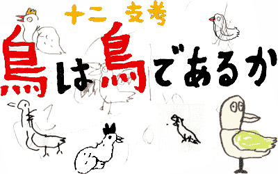 第13回![]() 一年前にはかなり多くの日本国民が鳥について考えた。 鳥ってどんな形だっけ? やっぱり鶏だよね。 面倒だから酉の字だけでいいや。 そう、そうなのだ。 酉年の年賀状作りのネタとして「鳥ざた」されたのだ。 その酉年もあと少しで終わろうとしている。 今年を逃すと一般人が鳥を思い出すのは十二年先になる。 遠い、遠すぎる。 だからこそこの機に鳥の本質について考えてみたい。 果たして、鳥は本当に鳥であるか? 驚くべき問題提起であるが、私のオリジナルではない。 1985年に別役実氏が 『鳥づくし』の冒頭で投げかけた疑問だが、 20年経ついまもこの疑問には明確な回答がなされていない。 この魅力的な問題にちょっとトライしてみたい。 ![]() 最初この問題が提起されたときの 私の反応は次のごとくだった。 鳥が鳥であるのは当然である。 なぜならば鳥でない生き物は鳥ではないからである。 数学の初歩「命題が真ならば対偶命題も真」に 当てはめたのだ。 「AならばB」が成立するとき 「notBならばnotA」は成立する。 甘かった、つめが甘かった。 この場合、AもBも「鳥であること」なので、 鳥でない生き物は鳥ではない。 という論旨は対偶とは言い切れず 裏命題の可能性を残している。 裏は必ずしも真ならず。 再度検証しなおす必要があるわけである。 こんどは間違いをおかさないように、帰納法を使う。 つまりたったひとつでも鳥でない鳥を見つければ、 鳥は鳥であるとはいえない。 ことが証明される。 最初に検討の俎上に載せるのはペンギンにしよう。 ペンギンは果たして鳥であるか? 映画『皇帝ペンギン』をご覧になった方はご存じのとおり、 南極のコウテイペンギンは相当長い距離を直立歩行で歩く。 何日も歩いた末に広大な氷原のただなかで大集団を成し、 おしくら饅頭に興じたりダンスのステップを踏んだりする。 メッカを目指して何日も何十日も不毛な土地を巡礼し、 カーバ神殿に集まって周回する イスラム教徒そっくりである。 ペンギンはイスラム教徒なのか。 これが証明されればペンギンは鳥ではないと言えそうだ。 いまのところ宗教の存在が確認された生物は ヒトだけだから、 極地で修行しているイスラム教徒である可能性がある。 しかし残念なことにペンギンには信仰心はないようである。 その証拠に動物園で観察しても アラーの神に祈ったりしない。 ペンギンはたぶん鳥なのである。 ![]() 次に検討したいのはキウィである。 キウィは果たして鳥であるか? ニュージーランドの森にいるキウィは夜行性で飛べない。 体も丸っこいし、もそもそと鈍重に歩く。 キウィは歩行能力を獲得したフルーツだという説がある。 が、これが間違いなのは切り刻んでも種がないのでわかる。 むしろ検討が必要なのは次の説であろう。 キウィはニュージーランドの先住民の末裔である。 オーストラリア人をオージーと呼ぶように、 ニュージーランド人をキウィと呼ぶのは事実である。 しかしこれをもってキウィ=ヒトとするのは早計である。 ニュージランドにはマオリ族という先住民が別にいる。 そのマオリ族が鳴き声から命名したのがキウィなのである。 キウィと鳴く人類はいまだに見つかっていない。 キウィはおそらく鳥なのである。 ![]() ではニワトリはどうだろう。 ニワトリは果たして鳥であるか? 養鶏場のニワトリは小さく区分けされたアパートで暮らし、 部屋から出ることもなく待っていれば食事が与えられる。 体はめっぽう弱くなってインフルエンザにもかかるしまつ。 どことなく昨今の若者をほうふつとさせないだろうか。 ニワトリはニートなのではないか。 証明されればニワトリは現代の若者ということになる。 たしかにニワトリは学ばないし働かない。 野生の鳥のように大空を羽ばたくこともなく、 日々ひたすら食って生きているだけである。 だがそれでもニワトリは生きる目標が明確である。 卵を産むとか食肉になるとか悲しい運命を背負っている。 目標なきニートのほうがよほどチキンに違いあるまい。 ニワトリもきっと鳥なのだろう。 ![]() 最後にカラスについて考えてみたい。 カラスは果たして鳥であるか? ペンギンもキウィもニワトリも空を飛ばないが、 カラスは自力で空を飛べる。 この一点をもってしてもカラスは鳥と思えるかもしれない。 だが、本当にそうだろうか。 実は現時点でカラスが鳥という証拠は見つかっていない。 そればかりか、カラスはヒトが進化した形であり、 それゆえ翼も手に入れたのだと主張する学者もいるのだ。 カラスはヒトよりも都会が大好きなのですぞ。 カラスはヒトに負けず学習能力が高いのですぞ。 なんといってもカラスはヒトを見下しているのですぞ。 確かに、もしかしたらカラスは鳥ではない可能性がある。 ![]() 果たして、鳥は本当に鳥であるか? 結論は次の酉年までおあずけということで。 イラストレーション:石井聖岳 illustration © 2003 -2005 Kiyotaka Ishii |