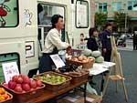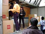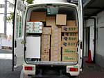 09:20 | いよいよトラックを販売場所に移動。 イズミさん、 「どうです? めちゃめちゃ積んできたでしょ? こんなに商品もってきたこと、 いままでないですよ」 おお、てんちょー(仮)、 すごい意気込みです。 |