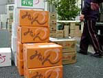 09:35 | 京都は西陣から、大学の先生が、 差し入れをもってきてくださいました! ありがとうございます! この先生、なんと西陣の販売では、 来店いただいたのみならず、 小テスト免除を条件に、 トラックストアに学生さんを 送りこんでくださった方なのです。 そんなわけでいちおうモザイクを。 |