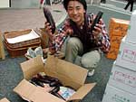今日の販売をお手伝いするのは、 きのう京都で活躍した べっかむ3(奈良出身)、 スガノ(京都出身)、 |