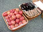 「お〜お!こりゃいいナスだぁ!」 イズミさんが思わず嘆声をあげたなすは、 つやつやして、ふっくら、はりがあって、 ほんとに見るからにすばらしい! |