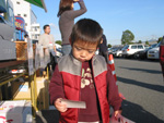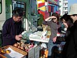 | 16:20 | となりのお店、 SEGAのゲームセンターの店員の おにいさんたちが、 休み時間に遊びにきてくれました。 「このみかん、すごいおいしい。 買ってかえりますよ。」 |