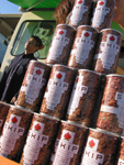 | 15:30 | 発掘されたトマトジュース、 タワーのように積んで アピールざんす。 試飲をしていただくと、 百発89中くらいします。 |