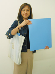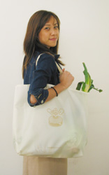 ほぼ日ストアの西田店長に紙ぶくろを持ってもらった