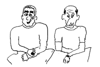 いやぁ、行く前からとにかくいろんな人に 注意されてたんだよ、まわりの観客に気をつけろって。 英国の友達にもね。無事を祈るって。 だからこの髪型も、帽子かぶって、隠して行ったんだ。 ──せっかくベッカム・ヘアにしたのに。 それじゃ、何にもならないんじゃあ・・・。 いや、ほんとにこわいんだってば。 もう、イングランドファンを 刺激しないよーに、刺激しないよーに。 おれの後ろにね、最初2人、キックオフ直前に2人、 4人並んじゃったのよ。 ──フーリガンですか? いや、すごい顔したイギリス人。 ──顔だけで判断しちゃだめですよ。 こわかったんだよー。 おれは、スウェーデンサポーター席にいたんだけど、 真後ろにイングランドサポーターが4人座ったんだ。 やけにでかい金の指輪しててさ。 でっかい手でさ、ゲンコツでガン、ってきたら こわいな、と思って。 ──ゲンコツ・・・。 どんどん、悪いほうへ悪いほうへ想像するわけだ。 ──(笑)どんな人だったか、 ちょっと描いてみてくださいますか? お、いいよ(さらさらさら)。 ![]() こんな人たちが慶一さんのうしろに座ったんだって。 手には大っきい金の指輪。年齢は40代から50代。 最初のうちは、スウェーデンの大使館の人が 旗を配ったりしてくれて、楽しかったんだ。 おれも、最初はうれしそうにスウェーデンの旗持ってた。 でもそのうち、そいつらが視界に入ってきたわけ。 スタジアムでは、酒は5時からしか売り出さないんだけど、 そいつら、いきなり飲みだして。 ──あ、ちょっと怖そう。 で、イングランドが前半に ベッカムのコーナーキックからキャンベルが 先取点をとったの。 そしたらそいつら 「ウアッ」 て喜んだの。すんごい声で。 おれらは一応スウェーデン側の席に座ってるから、 シーンとしてた。 でも場所は最高、コーナーフラッグの真横、 ベッカムが蹴る真後ろね。蹴るときは総立ち。 そして、後半になってスウェーデンが点を入れたら、 みんなでワッと立ったんだよ。 したらさ、シッダーン!って言われた。 ──シッダーン? SIT DOWN!。んで、 おれは座ったんだ、すぐ(笑)。 試合中それが何度か繰り返されて、ついに そのこわい4人のうちのひとりが 座らなかった奴に向かって 紙コップをバコーン! って投げたの。 そしたら、前方の日本人スウェーデンサポーターに ポコンってあたったんだよ。 あてられた日本人、あいつ、えらかったねえ。 紙コップを投げ返したんだ。 ──すご! 持ち込み禁止のペットボトルも混ざって、 3回くらい投げ合いになったよ。 おれの頭上を紙コップとペットボトルが飛んだね。 で、だんだん顔色変わってさー、おれ・・・。 スウェーデン大使館の人が配ってくれた旗を 持ってたんだけど、 隣に座ってた女の人にさ、 「旗あげます」 って、あげました。 ずっとスウェーデンをひとりで応援してたみたいなんで、 って、それは口実。 ──いい人のふりをして、そーっと(笑)。 そのあとは、ひたすら イングランド側についているファンのようなフリをしつつ、 スウェーデンがわについているようなフリをしつつ(笑)。 時計をずっと見てて、 早く引き分けになんねえかなっと、思ってました。 ──楽しくない。楽しくないですよ。 同点になってから、ゲーム終了まで 30分くらいだったかな。 すごい長く感じたよ。 ロスタイムが4分だったんだけど、 その4分間、スウェーデンが攻めっぱなしでさぁ。 「オネガイ、点入れないで、引き分けて(小声)」 ──引き分けなら、両方が怒らないですみますからね。 そーそ。 終わりの笛がなった瞬間、 「・・・ホ」ですよ。 思わずうしろをバッて振り返っちゃった。 そしたら、もういなかった、そいつら。ホッ。 ──そういうことを考え合わせると、 現場では手放しで楽しめないものなのかなぁ。 席によりますよ、楽しめるかどうかは(笑)。 おれ、イングランドの旗の色見るの ちょっといやんなっちゃったよ。 あの4人が来ないうちは楽しかったんだよ、 はじまる2時間前くらいは。 ──2時間前から 席に座ってらっしゃったんですか? あ、スタジアムには、はやく行くべきだよ、ぜったい。 ──2時間前って、何かあるんですか? 練習だよ、練習。 練習の前にも、選手がみんないったん出てくるんだよ。 ピッチにただ出てきて、ぶらぶらする。 イングランドはジャージで出てくるんだけど、 スウェーデン、スーツ着てたよ。 ──かっこいーですね! ネクタイ+スーツで出てきて、 グラウンドをぶらぶらして、 観客からワーっていわれて、5分くらいで引っこむの。 それから着替えて練習する。 練習スタイルも国によって違うみたいだね。 国立競技場だと天井がないけど、 今回の埼玉のスタジアムは 屋根がちょっとあるんだよ。音響効果がちがうの。 うぁーって、ものすごい音がするの。低い男の声ね。 わー、これがワールドカップか、ってかんじがするよ。 ワクワクするんだよね。 ──それだけで楽しそう。 お祭りの雰囲気が全体を