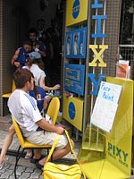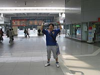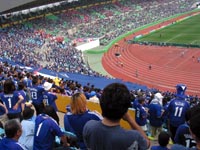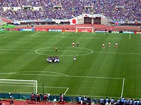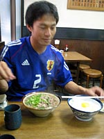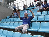 こんちは。 ROCK西本でやんす。 日本グループリーグ突破をかけた 日本VSチュニジア戦に行ってまいりましたっ! 興奮さめやらぬ大阪から勢いだけの 原稿をお送りいたしまっす。 ![]() ついたよー。 朝7時45分羽田発の飛行機で関空に入るはすであったのが パソコンのACアダプターを忘れてしまい 家に取りに帰っていいるうちに 飛行機に乗り遅れるというハプニングがありながらも 無事、関空に到着! 15分後の便の空席待ちに滑りこんだのでありました。 ここで今回の旅に同行する奥田さんと合流。 ![]() サッカー友奥田さん 奥田さんとROCK西本とはサッカー観戦仲間であります。 奥田さんは7時45分の飛行機で一足先に到着。 ![]() 電車界の「鉄人28号」と呼ばれる 南海電車ラピートにのって宿泊ホテルのある 難波へ移動。 ここで生茶を購入すると キオスクのおばちゃんから 「わたしらの分も応援してね、応援がんばってね」 と声をかけられる。 今日の試合はキオスクのおばちゃんにとっても 他人事ではないらしい。 ![]() 宿泊先のある難波に到着。 パソコンの調子が悪いので デスクを借りるために 前職ってこともあって 知りあいの多い吉本興業に立ち寄る。 さすがにユニフォームを着たまま 会社に入るのは気恥ずかしい。 ![]() 吉本界隈では有名な 「ちとせ」というお店です。 ここでちょっと早めの昼食。 大阪ならではというか 肉うどんとご飯というメニューを食べる。 ここでもうどん屋のお客さんに 「応援頑張って!」と声をかけられる。 青い日本代表のユニフォームを着ている人は 今日に限ってはなんだか特別みたい。 ちょっと責任を感じながら 「大阪の丸の内線」こと地下鉄御堂筋線にのって スタジアムへ向かう。 ![]() 地下鉄の中は青いユニフオームが一杯。 「なんだか盛り上がりすぎて 浮ついてきますねえ」と奥田さん。 うわつきついでに 途中下車してバッティングセンターへ向かう。 ![]() さすがにお昼のバッティングセンターには 日本代表のユニフォームを着ている人は一人もいなかったが 松阪の130キロの速球を 奥田さんと3ゲームづつやってみたりした。 ![]() 客はワシと奥田さんだけであった。 よりみちをしながらも ようやく会場である長居に到着。 フェイスペイント屋さんが大人気であった。 ![]() スタジアム付近は交通規制が徹底しており 普段のサッカーの試合とはまったく違った 雰囲気がする。 なんだか「戦い」の空気なのだ。 うきうきわくわくというより 「やるぞっ!」て感じなのだ。 ![]() 入場時にチケットと身分証明書との照合チェック等があると 事前にアナウンスされていたが どうやらそういうこともなく すんなりと入場できた。 ![]() キックオフの3時間前にスタジアムに入場する。 開門したばかりで場内は閑散としているようですが 実は日差しがきついので屋内にみんな退避してたりします。 ![]() チケットを見ながら自分の席を探す。 ゴール裏のいわゆる日本代表サポーターが集まる 「熱い席」であることは確かだ。 席は一番後ろから5列目。 それでもスタジアムの設計のおかげなんだろうが ピッチとの距離はそんなに感じない。 ![]() キックオフ1時間前。 日本代表チームのユニフォームをかたどった フラッグが広げられる。 もりあがるスタンド。 あちらこちらで「日本コール」が始まりだす。 ![]() そうこうしていると 日本代表イレブンのウォーミングアップが開始される。 ボルテージがあがりっぱなしのスタンド。 延々続くニッポンコール。 実はこの時点ですでに手が痛い。 ![]() キックオフ30分前。 先発メンバーを発表! 中田英寿選手がコールされた時 悲鳴のような歓声がスタジアムに響く! 頼むぜヒデ! テレビでおなじみの 今回のワールドカップのテーマが流れてきて 選手が入場。 この時、明るいビルで観戦中の あややより電話が入る。 電話口でもニッポンコールを続けるワシ。 ![]() 膠着したゲーム運びであった前半。 観客もちょっと堅かったが 大阪の観客はずっ〜っとあの男の登場を待っていた。 この長居スタジアムをホームとする セレッソ大阪の森島だ。 後半開始と同時に森島が登場すると 場内は一気にヒートアップ! ![]() 森島、中田のゴールが決まり 大騒ぎのスタジアム。 アイーダの合唱が延々と続き ロスタイム表示が1分と表示されると 勝利を確信して抱きあう人々も・・・。 ![]() 試合終了の瞬間っす! もりあがり過ぎてなんだかぼーっとしたまま 地下鉄に乗り込んだ。 当然地下鉄は日本代表でいっぱい。 ![]() ホテルのある難波に戻ると 阪神優勝より凄いんじゃないかという盛り上がり。 ![]() ホテルの中にもこんな人がいた。 ![]() ということで気を落ち着けて原稿を書きだしたんだけど どうやら道頓堀がえらい騒ぎになっているらしい。 道頓堀に飛び混む人が後を絶たないらしい。 ![]() こうなったら原稿なんて書いていられないよ。 ぼくも夜の街に繰り出してきま〜っす! 次はトルコ戦だっ! ありがとうニッポン! 頑張れニッポン!