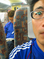 新幹線でユニフォームに着替えた二人