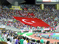 トルコサポータ席ではでっかいトルコ国旗が