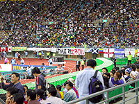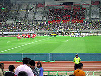 スタジアムの客の大半は日本人であるため