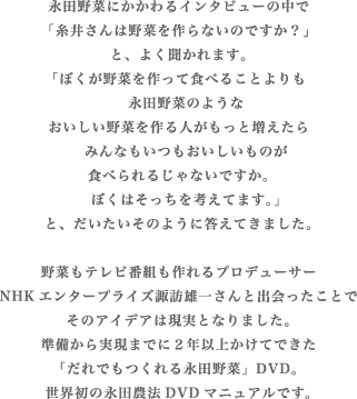 『だれでもつくれる永田野菜』DVDについて、