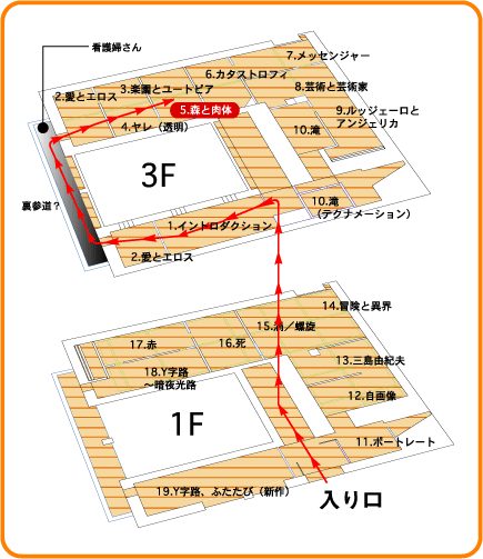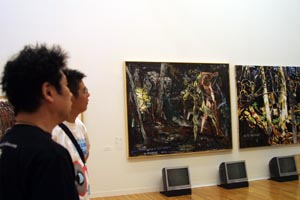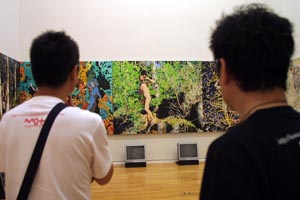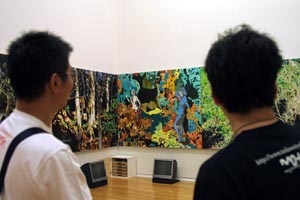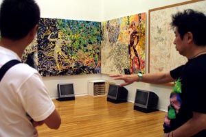 絵の下にいくつかテレビモニターが置いてあります。 |